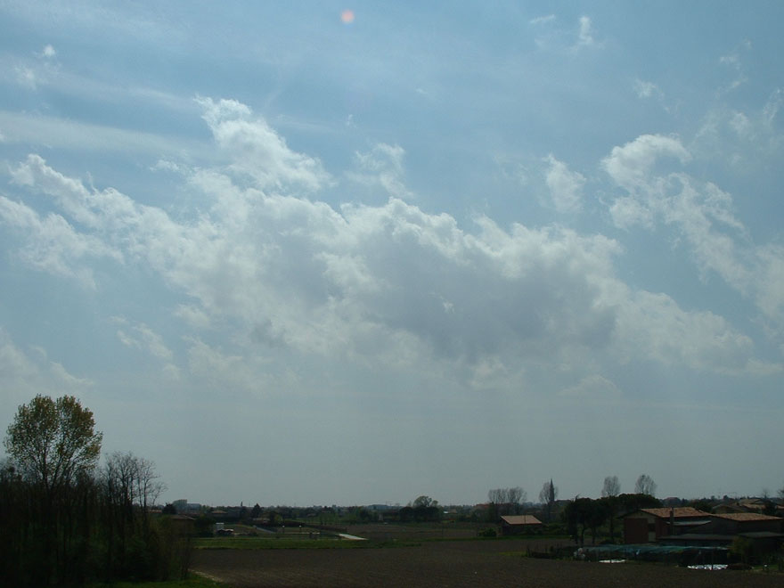 Guardo anche verso sud, dove i cumuli sono inclinati verso est sempre per via del flusso teso occidentale.
